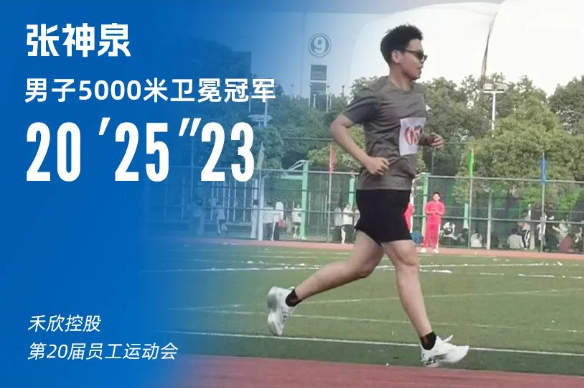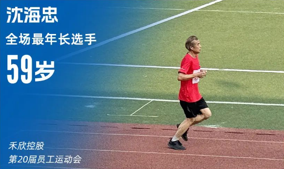 禾欣科技代表隊的59歲選手沈海忠,作為全場最年長的選手,參加5000米長跑。他表示,參加了20屆運動會,從未以運動員的身份上場。2020年起,他開始跑步訓練,經過充分的準備,在今年下半年即將退休、又恰逢禾欣40周年,他希望給禾欣的文化建設貢獻自己的一份力量,也給自己的職業生涯畫上圓滿的句號。在衡量身體狀況、提前準備過13公里壓力跑的情況下,沈海忠以23′50″的成績超常發揮,贏得了全場的掌聲。