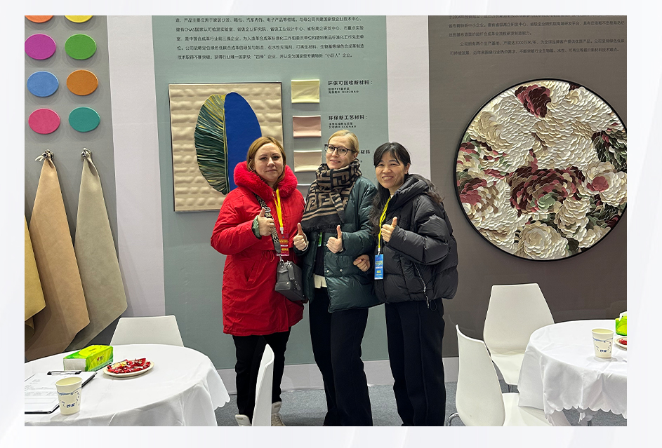 圍繞環(huán)保趨勢,禾欣科技推出了水性、無溶劑的綠色聚氨酯產(chǎn)品;合成革板塊則以敦煌系列、牛仔布紋系列、霧面雙色、鏡面革等風(fēng)格化產(chǎn)品,展現(xiàn)新材料的無限可能;超纖板塊,禾欣可樂麗的多彩絨面、新品牛絨等奪人眼球,還通過汽車座椅、方向盤等場景,展現(xiàn)了超纖在車用領(lǐng)域的廣闊前景。三天展會,來自巴基斯坦、俄羅斯、尼泊爾、土耳其、烏茲別克斯坦等世界各地的客戶對產(chǎn)業(yè)鏈各類產(chǎn)品表現(xiàn)出深厚興趣;設(shè)計師們則尤其關(guān)注禾欣的明星產(chǎn)品,如云朵皮革和打孔超纖革的性能及應(yīng)用場景。
